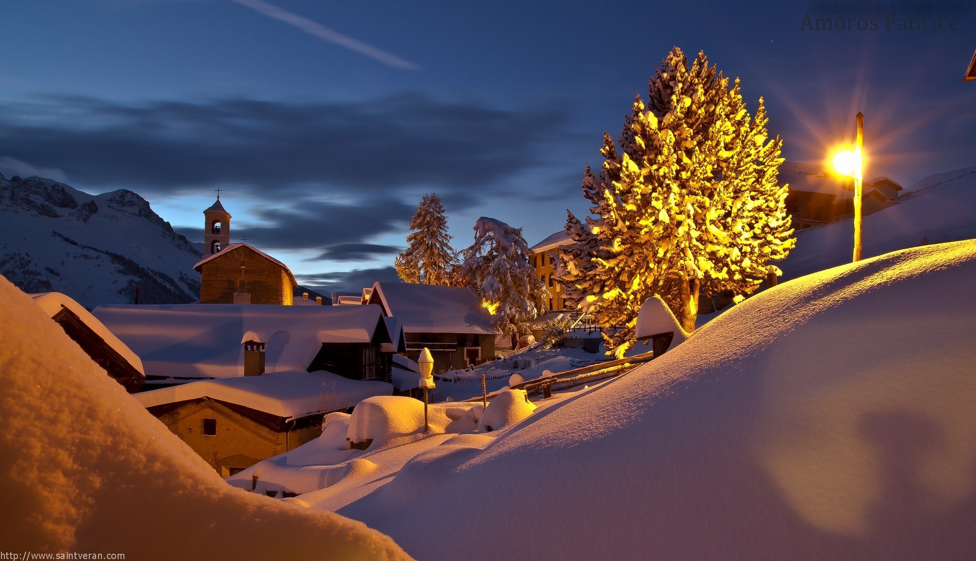 Au cœur du parc naturel régional du Queyras, Saint-Véran est la plus haute commune d’Europe, à 2045 m d'altitude. Sa devise est « le pays où le coq picore les étoiles. »