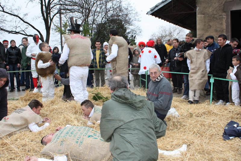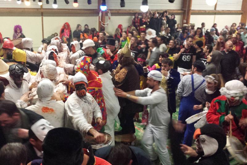 Les anciens déversent alors, au centre de la place, les comportes de lie et, avec des hurlements hystériques, les Pailhasses se jettent dans les flaques, plongent dans les baquets encore pleins et s'élancent à la poursuite des Blancs, dans une course effrénée qui n'épargne personne.