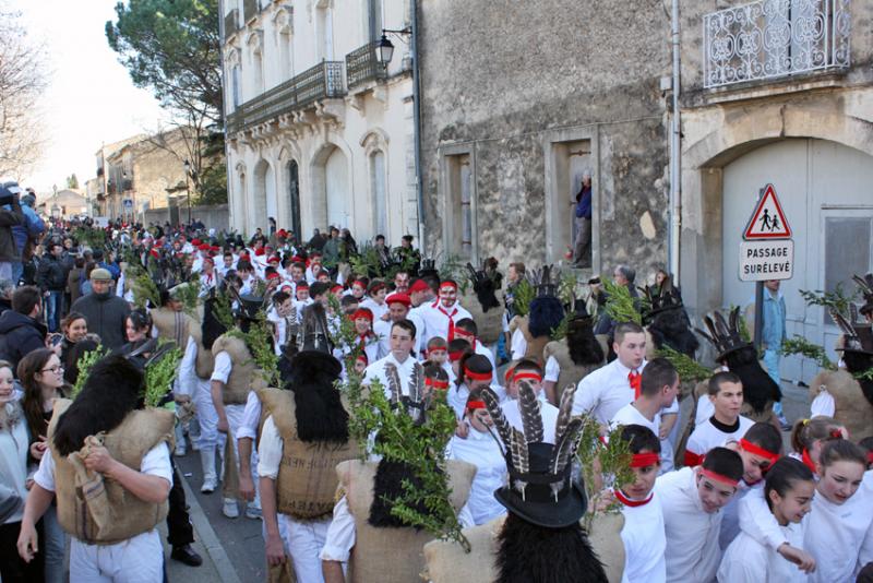 En début d'après-midi, Pailhasses et Blancs se réunissent et défilent dans les rues du village.
