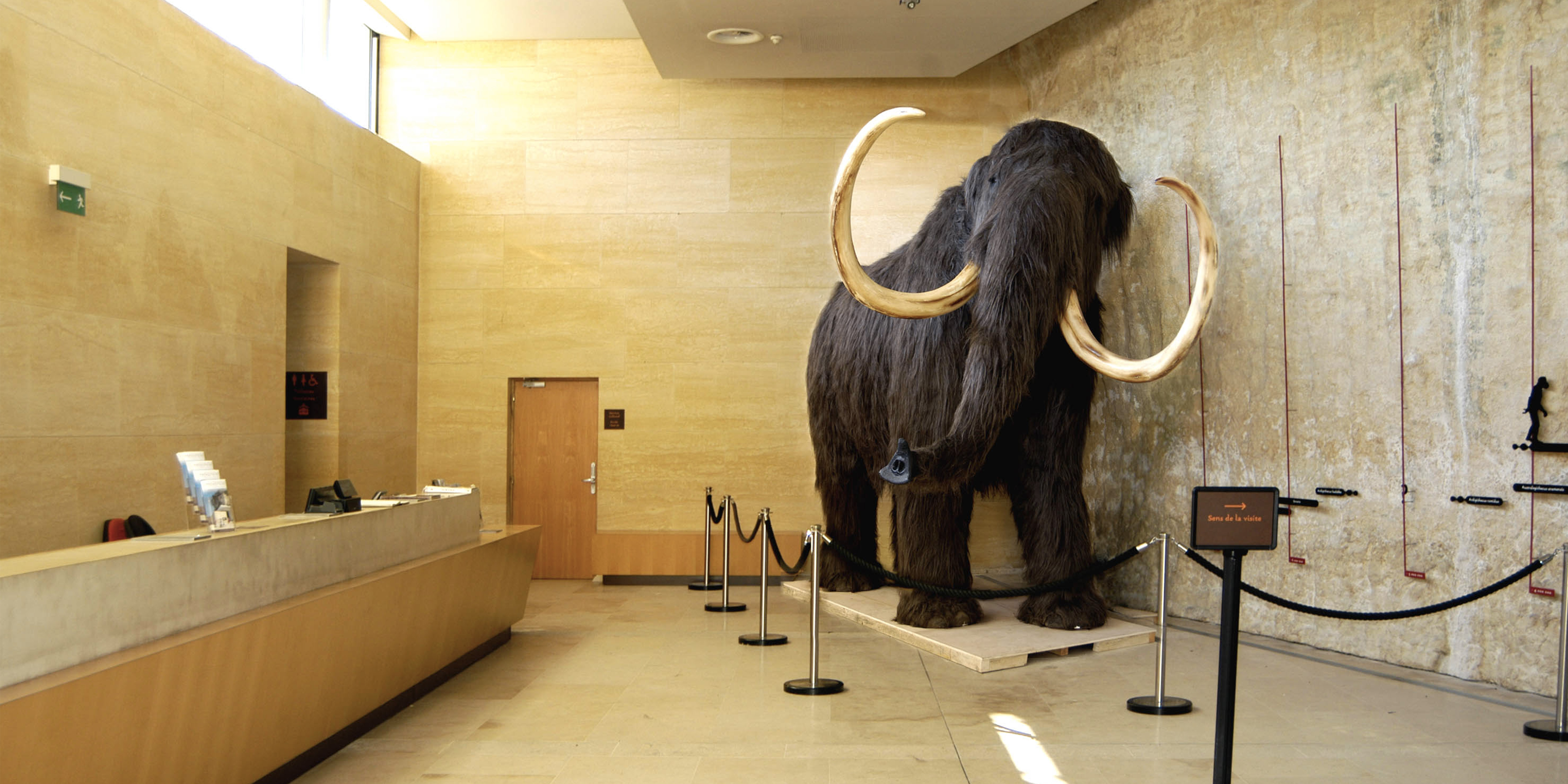 Le long de la falaise monumentale, partie intégrante de ce parcours à travers le temps, les salles d’exposition regorgent d’outils de pierre, d’objets d'art (os, ivoire), de dermoplasties (reconstitutions grandeur nature d'hommes préhistoriques) et d'animaux disparus permettant de comprendre l'évolution des sociétés depuis 400 000 ans.