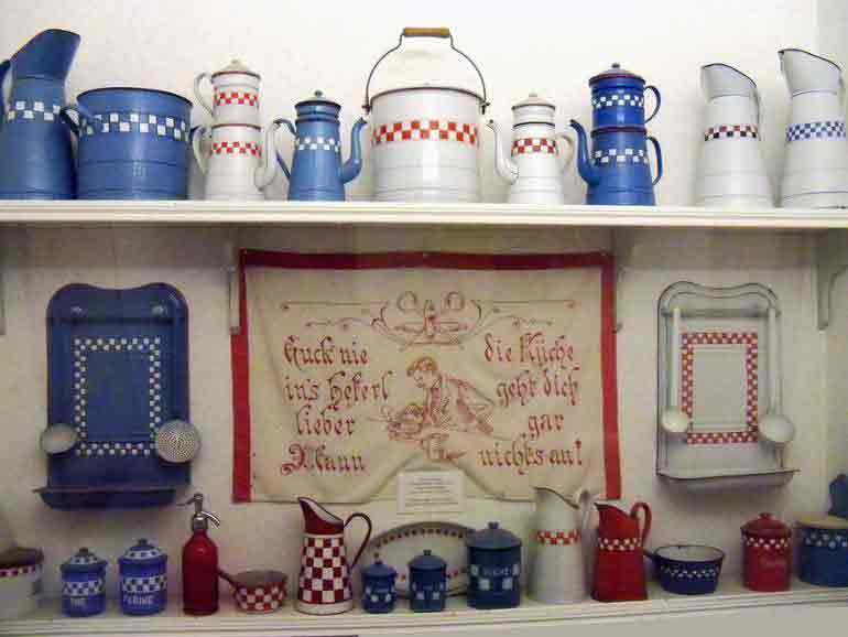 A voir quelques authentiques curiosités comme les « Bigotelles », un filet à moustaches, le « Bourdaloue », un pot de chambre que les dames utilisaient pendant la messe ou un casque de soldat allemand transformé en passoire de cuisine…