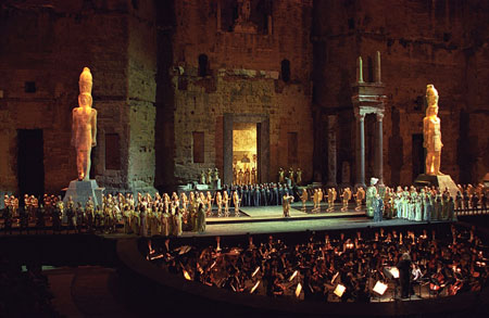 Sa façade nord, 37 m de haut sur 103 m de long et 1,80m d’épaisseur que Louis XIV considérait comme la plus belle muraille de son royaume, accueille à partir du XIXe siècle, les plus grands spectacles lyriques.
