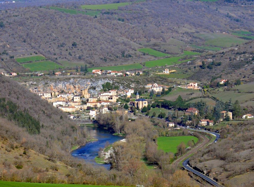 De l’église, on bénéficie d’un impressionnant point de vue sur le Viaduc de Millau et le Tarn.