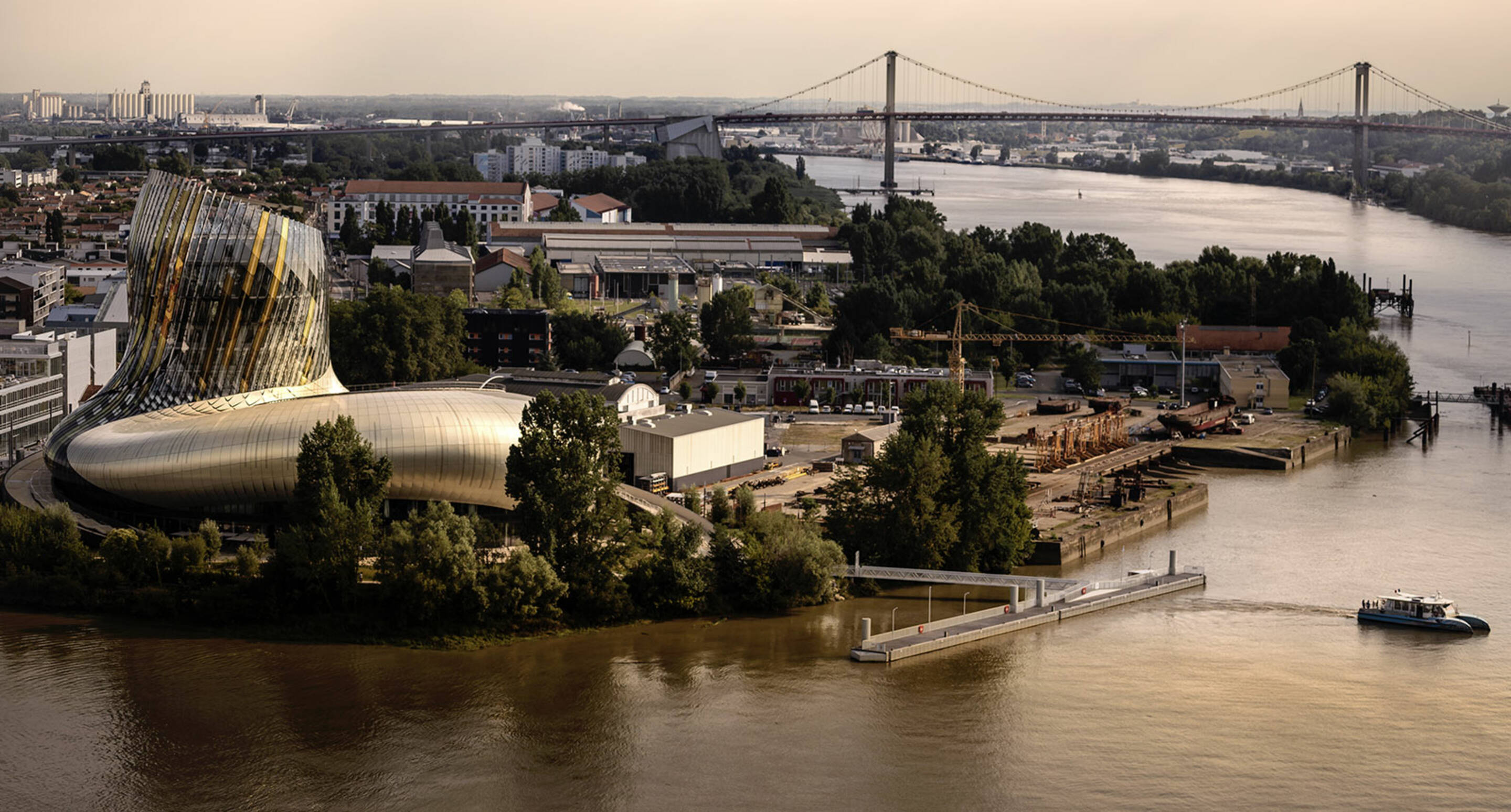 - Les jardins en libre accès, espaces végétalisés qui créent le lien entre La Cité du Vin, la Garonne et l’origine sauvage de la vigne