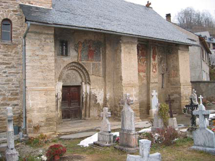 Mont est un petit village des Hautes-Pyrénées dépendant du canton de Bordères-Louron, à 5 km du col de Peyresourde. Il compte 27 habitants permanents et, avec des moyens très modestes, Mont s’attache à préserver l’authenticité de son patrimoine immobilier et pastoral dont l’église romane Saint-Barthélémy et ses magnifiques fresques. Ces fresques du XVIe siècle ont pour thèmes la Passion du Seigneur, crucifixion et Pieta, le martyre des Saints et le Jugement dernier. Dans cette dernière évocation, un diable assis cornu et très poilu a contribué à la notoriété du lieu. Elles sont principalement l’œuvre des peintres Rodiguis, qui réalisa les grandes fresques de la voûte Intérieure et Bona qui peignit les fresques de l’Oratoire et vraisemblablement la décoration de la chapelle de la Vierge et les fresques extérieures de la façade au Midi. A l’entrée, on notera un chrisme, arrangement des lettres grecques du mot « Xristos ». Les fresques du chœur représentent la Sainte Trinité et sur le mur du chevet, caché par le retable, on aperçoit, en haut, la main droite de Dieu le Père. Les fresques monumentales de la travée centrale figurent le Christ en gloire, entouré des quatre Evangélistes. La dernière travée présente une fresque de la Passion du Christ, en deux scènes tirées des Evangiles : - au Midi, le jugement et la condamnation de Jésus portée par Caïphe, le grand-prêtre, et confirmée par Pilate, le préfet romain, - l’autre scène est le portement de croix : Jésus monte au Calvaire, entouré de soldats, aidé par Simon de Cyrène.