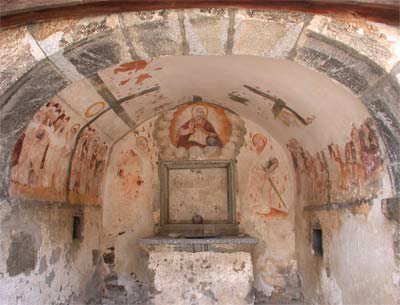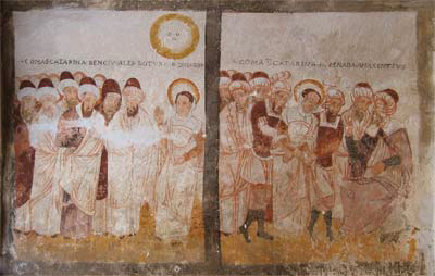 La chapelle de la Vierge et L’Oratorio Sainte-Catherine La petite chapelle de la Vierge est ornée de quatre médaillons alors que l’Oratorio abrite une fresque représentant le supplice de Sainte-Catherine d’Alexandrie, les pentures ocres datant de près de 500 ans.