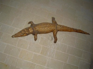 En effet, à Oiron, une dévotion populaire encore vive au siècle dernier s'était installée autour du crocodile dont on grattait les mâchoires pour préparer une potion miraculeuse contre les fièvres. On raconte aussi que ce reptile rappellerait un dragon qui vivait autrefois dans un souterrain duquel il ne sortait que pour chercher sa nourriture.