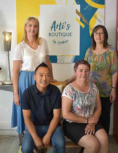 Ainsi en juillet 2019, du 2 au 31 juillet, pour la sixième édition d’Arti’s Boutique, c’est de nouveau une équipe de quatre artisans d’art qui se partage les 50 m2 de la boutique éphémère : Nadia Ambroise, « Savonnerie Abracadabulles », (fabrication de cosmétiques naturels), Sylvie Lagarde, « Atelier Prune », (décoration sur porcelaine et création de bijoux fantaisie), Noël Ly, « Nocas Metal Art », (réalisation d’objets de décoration en métal), et Catherine Tornatore, « L’Atelier de Prun’Elle », (création de galets de gratitude, bijoux fantaisie et peinture sur toile).
