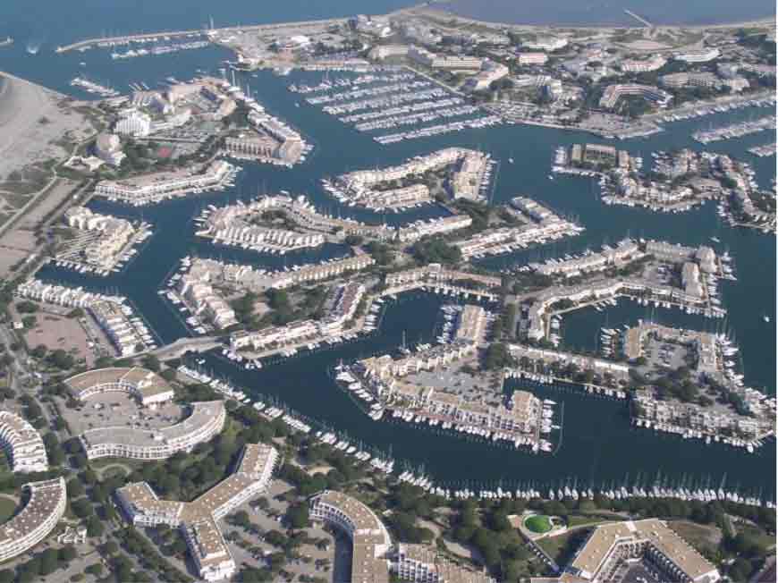 Port Camargue, on le sait peu, est le plus grand port de plaisance d’Europe et le deuxième du monde derrière celui de San Diego en Californie, avec 5 000 places à flots, dont la moitié en appontements privés au pied des «marinas», maisons mitoyennes à un étage spécialement conçues pour les propriétaires de bateau.