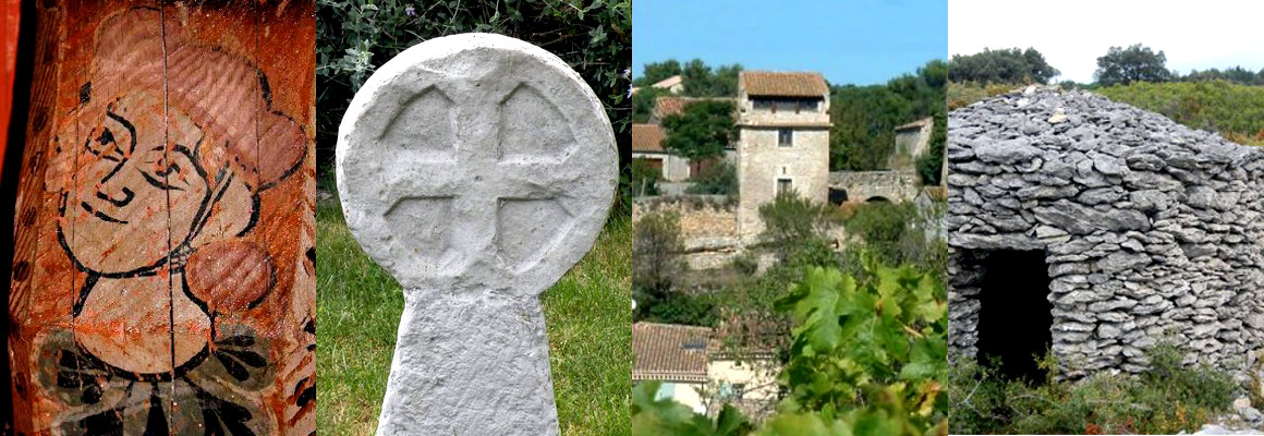 Parmi les éléments à voir, les capitelles, cabanes en pierres sèches, et dans le village, l’église gothique et ses bois peints du XIIIe siècle, la façade du château seigneurial, le musée des vieux outils vignerons, l’Espace Pierre Sèche et Architecture Rurale, ainsi que les stèles discoïdales dans le jardin du curé.