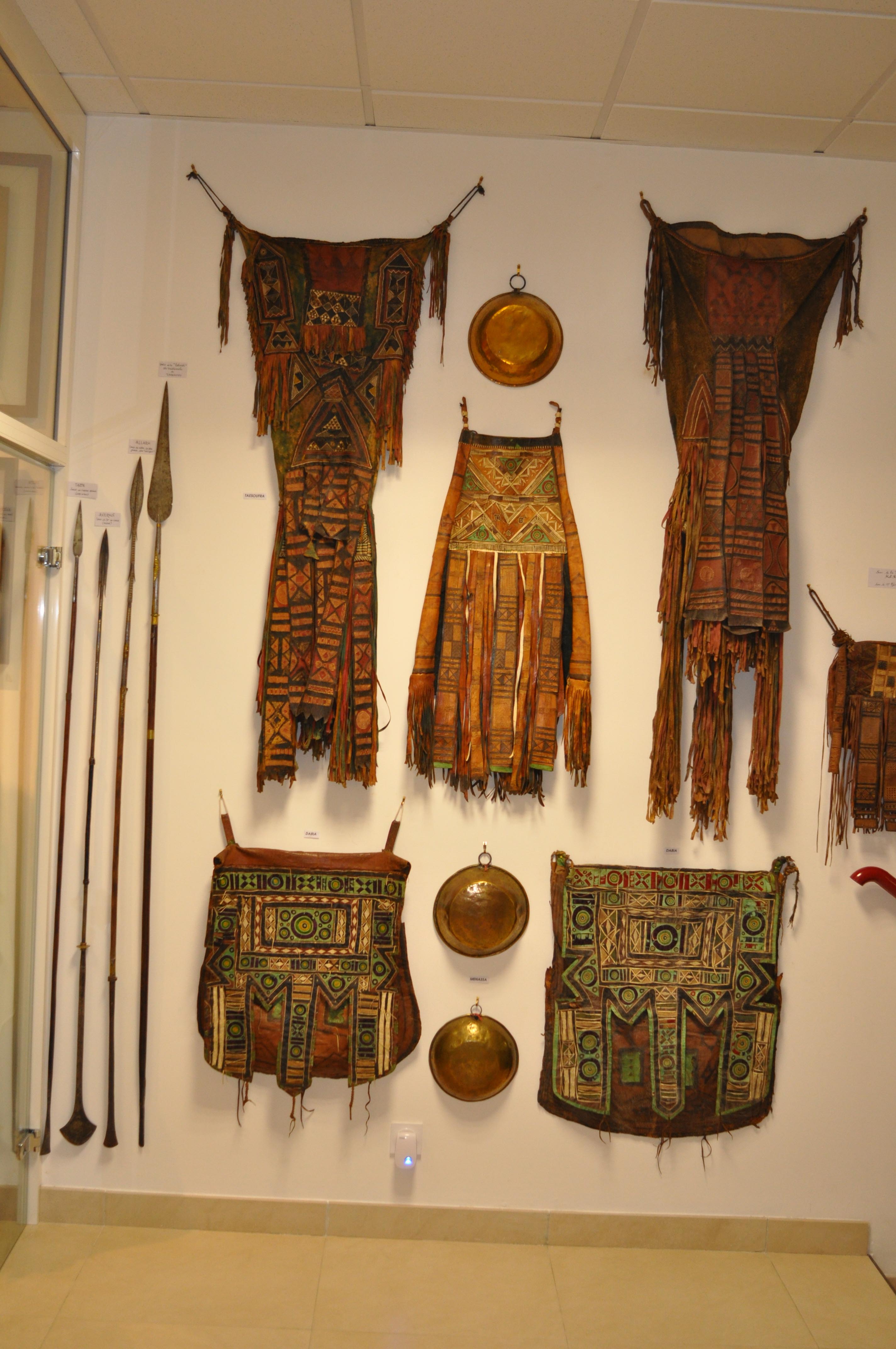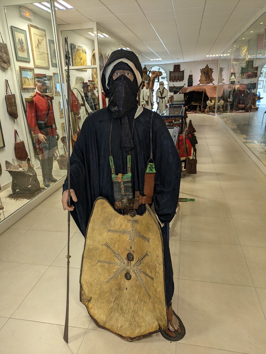 La Rahla et Bernard Adell présentent également des fanions des différentes unités méharistes, ainsi que des boucliers de peau d’oryx utilisés par les Touaregs.